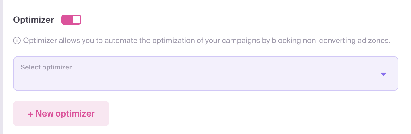 The Optimizer is an advanced traffic management tool that automates the blocking process of underperforming sources. By setting custom rules based on key performance metrics—such as spend, conversion volume, eCPA, or ROI—the system can automatically block sources that fail to meet your criteria. This protects your budget in real time and ensures that your spend is focused on the most profitable traffic segments.