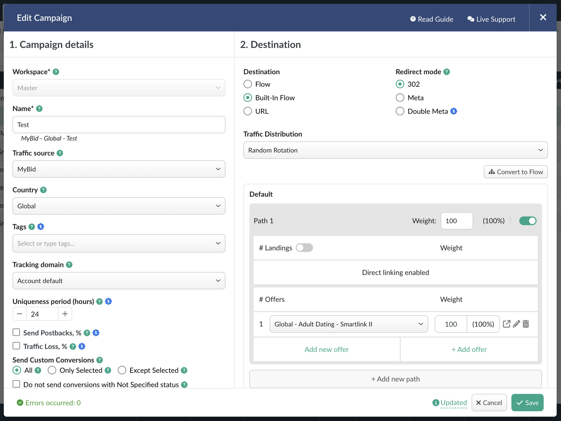 - Select MyBid as the Traffic Source and complete the required campaign fields.