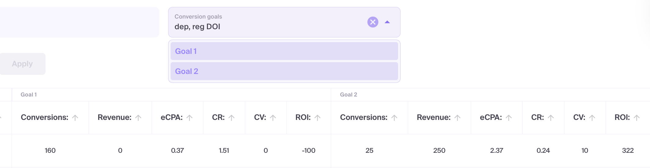 Multigoals allow advertisers to measure multiple user actions individually instead of grouping all leads into a single metric. By separating actions—such as a registration, a deposit, or a purchase—you can identify which specific events drive the most value. This granularity brings full transparency to your eCPA, revenue, and ROI calculations for every stage of your funnel.